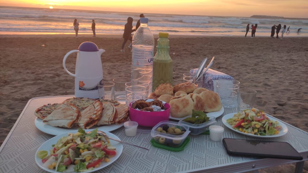 في السياق ذاته، تتحول الفضاءات الشاطئية قبيل أذان المغرب إلى نقاط تجمع، حيث يتبادل مرتادو البحر وجبات الإفطار في أجواء عائلية، مع الاستمتاع بمناظر الغروب.