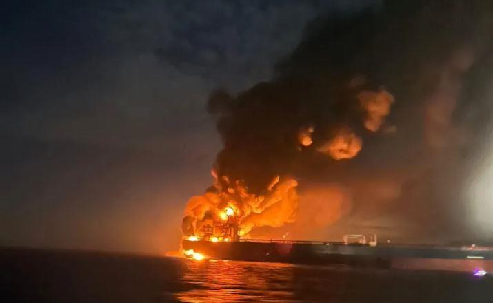 ووفقًا لتعميم ملاحي وصف بـ”الهام جدا” أصدرته المصلحة، تلقت الجهات المختصة نداء استغاثة من الناقلة مساء الثلاثاء، قبل أن تشهد انفجارات على متنها أدت إلى اندلاع حريق واسع النطاق وغرق السفينة بالكامل.