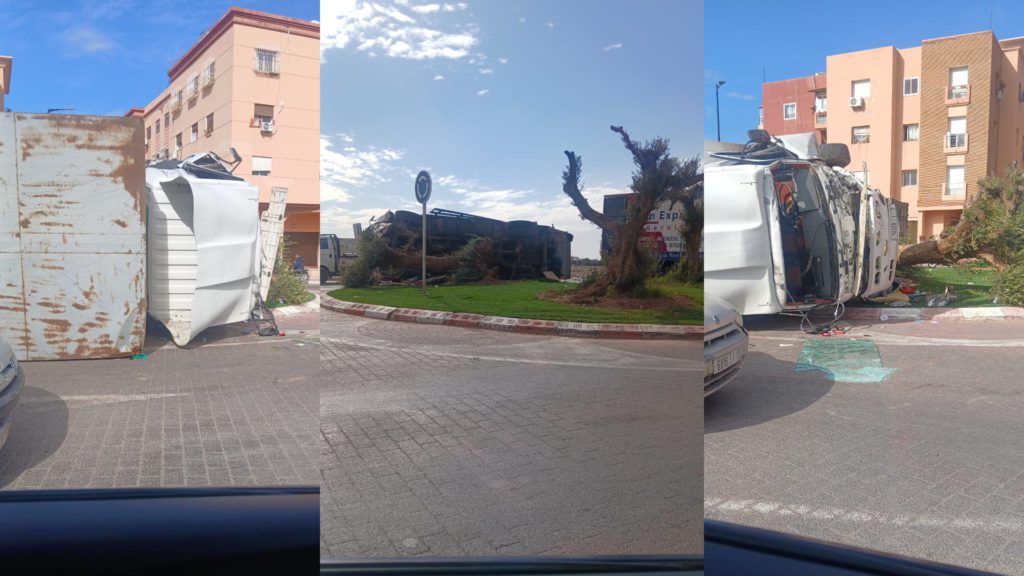 إصابة سائق ومرافقه في حادث انقلاب شاحنة بمراكش