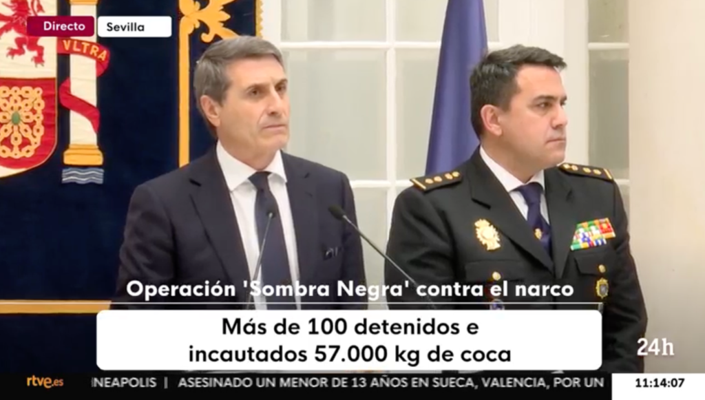 ووفقًا للسلطات الإسبانية، تمكنت العملية من تفكيك شبكة إجرامية تضم نحو 100 شخص، وضبط 57 ألف كيلوغرام من الكوكايين.