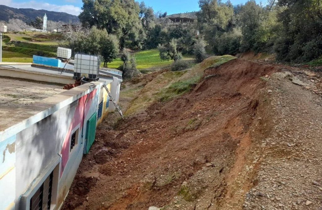وفقًا لمعطيات من عين المكان، تسببت الأمطار في انجراف كبير للتربة من الجهة العلوية للمؤسسة، وتزامنت مع ظهور تشققات واضحة في أرضية وبنية المدرسة، مما يرفع من احتمالية انهيارها، خاصة وأنها تقع بمحاذاة وادٍ.