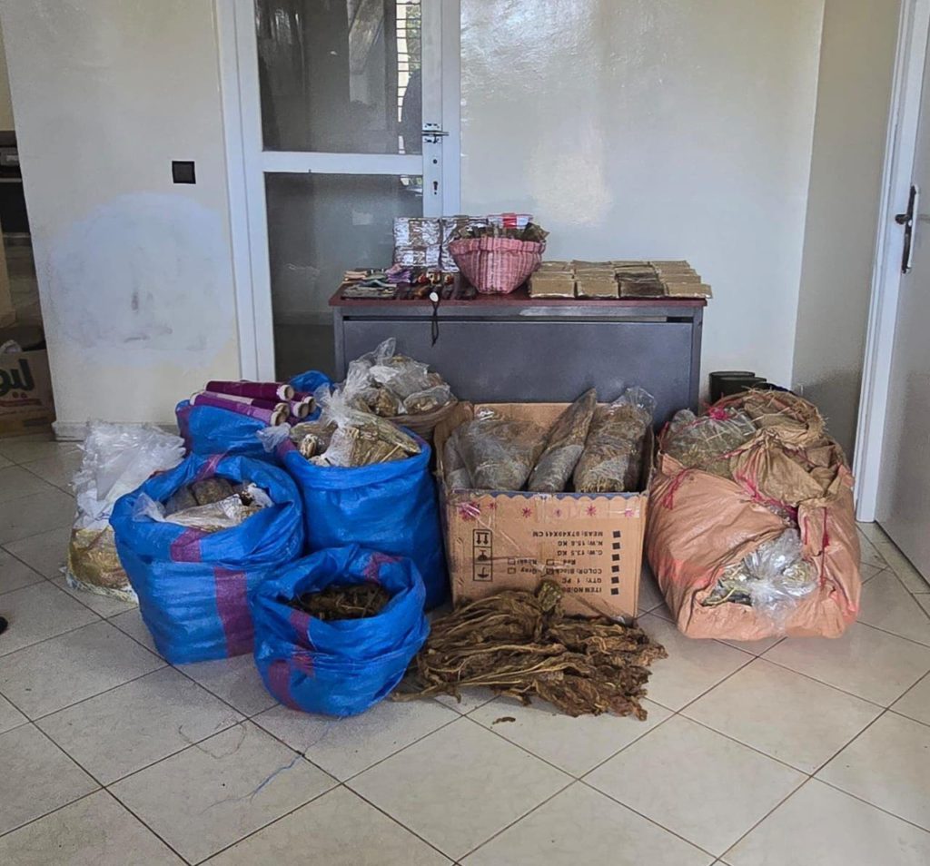 كما أسفرت العملية الأمنية، التي شاركت فيها فرق من المركز القضائي لسرية الجديدة والفرقة الترابية باثنين شتوكة ووحدات إقليمية، عن ضبط وحجز كميات كبيرة من المخدرات، شملت 19 كيلوغرامًا من الحشيش، و90 كيلوغرامًا من سيقان القنب الهندي، و12 كيلوغرامًا من التبغ المجفف.